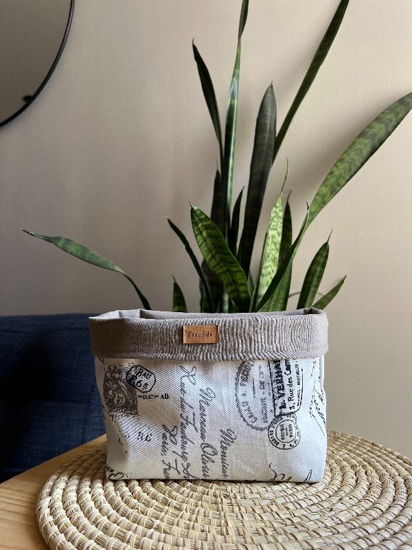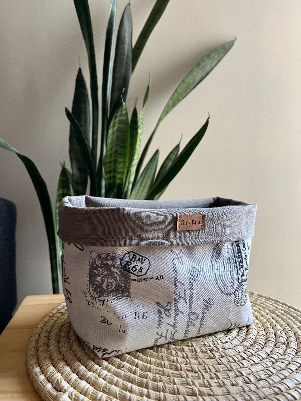 Cesto organizador confeccionado en gabardina, forrado en su interior con tela lisa.